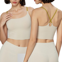 Nuova estate da donna con scollo nudo in palestra per allenamento Yoga sportivi intrecciati reggiseni con cuscinetto fisso abbigliamento Fitness Push up Top corto