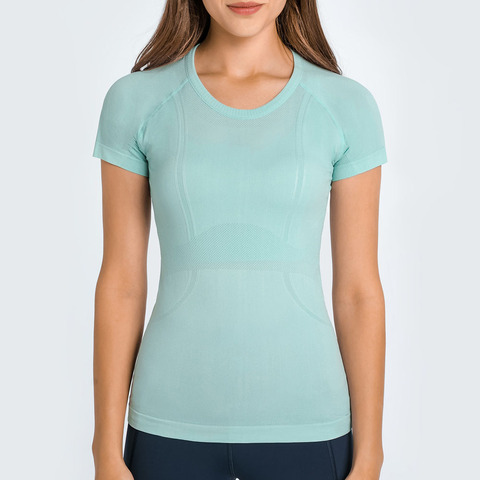เสื้อยืดคอกลมไร้รอยต่อสำหรับผู้หญิงชุดวิ่งออกกำลังกายฟิตเนสโยคะฟิตเนส